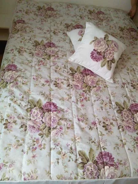 Set cuvertura pentru pat quiltuita și două perne decorative, imprimeu floral